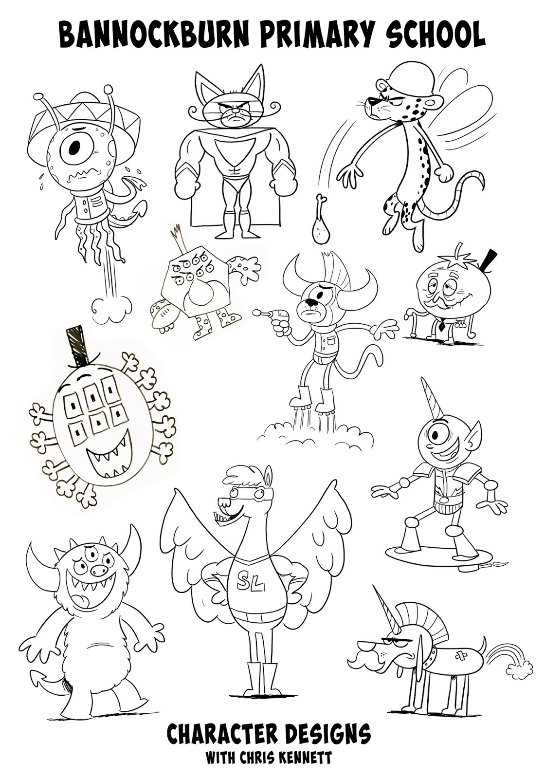 Throughout the week I drew Monsters with the Preps, Grade 1-3 and brainstormed some original character designs with Grade 4-6.